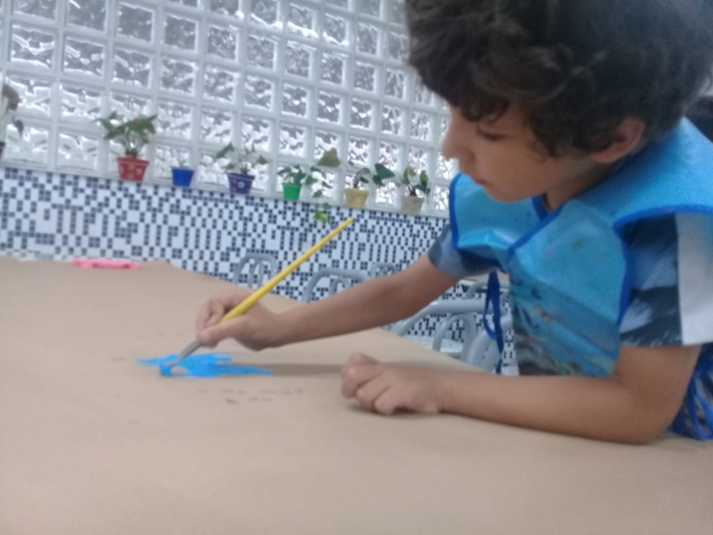 Nossa turma trabalhou pintura a guache, que é uma atividade além de muito animada, é uma forma de expressão para a criança, ajuda a melhorar a motricidade e também ajuda a relaxar e desenvolver o processo criativo.