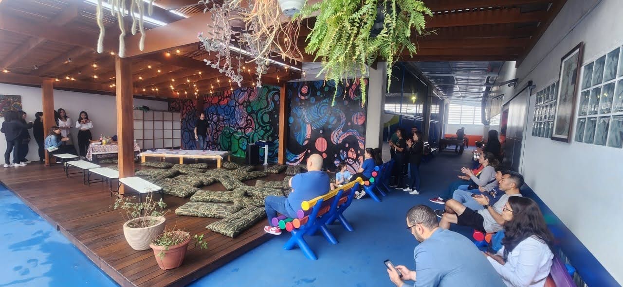 A manhã começou com uma grande roda formada pelas mães, seus filhos e a equipe do Colégio Reggio Emilia. O ambiente estava repleto de entusiasmo e emoção, enquanto todos se preparavam para uma experiência única de união e diversão.
