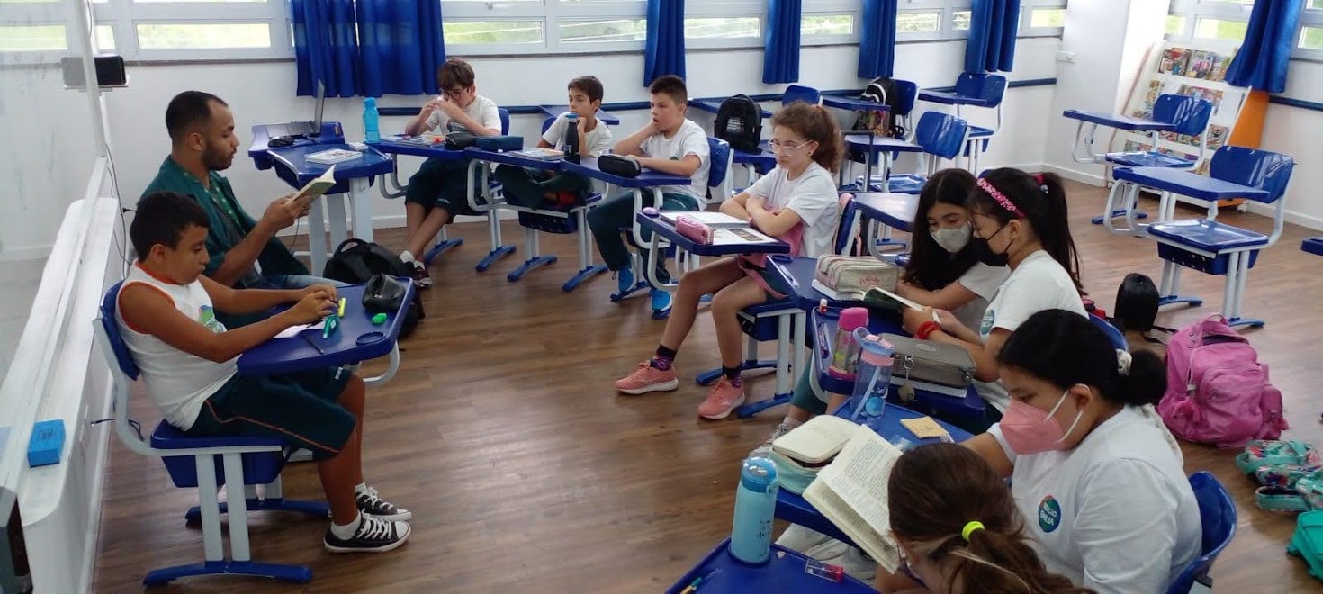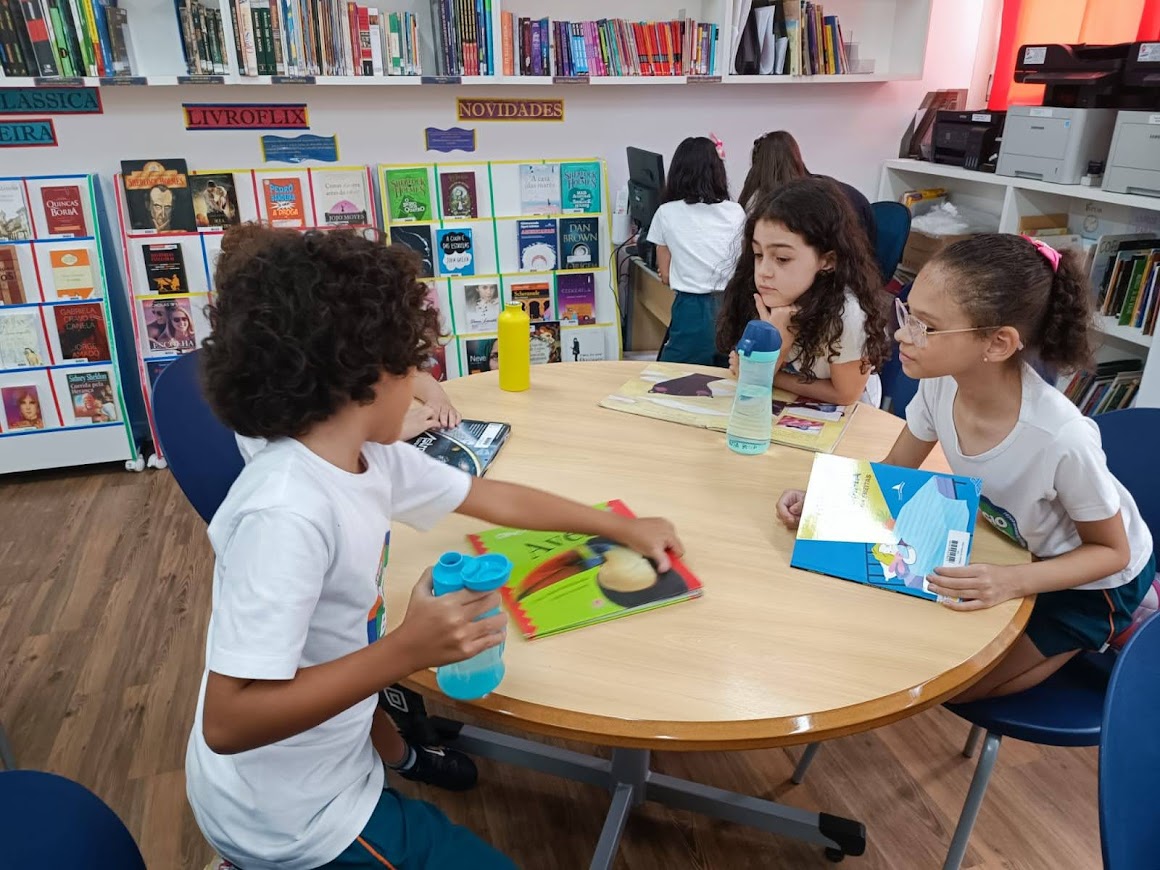E ler não se restringe somente à biblioteca. Aqui é comum encontrarmos estudantes lendo no recreio, nos horários de entrada e saída, nas salas de aula e em ambientes acolhedores no pátio ou na área verde. É uma cultura leitora que só cresce e se multiplica.